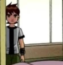 The source moment works because Ben Tennyson stands partially hidden behind a doorframe, looking into a room with a serious and observant facial expression. Even without full plot context, viewers immediately understand the tension and why the expression became shareable.