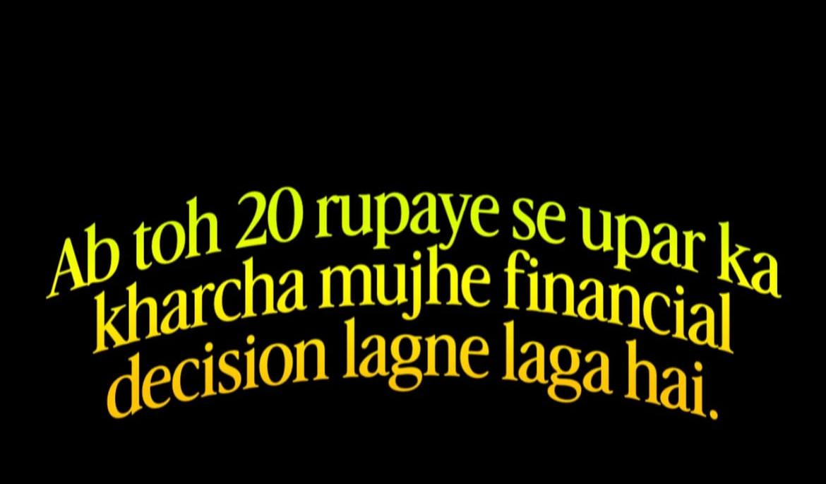"Ab toh 20 rupaye se upar ka kharcha mujhe financial decision lagne laga hai."